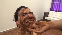 Lovely ebony slut covered in shit taking piss
