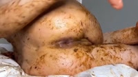Smearing and eating messy shit while dildo fucking