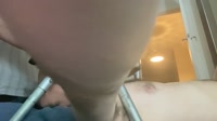 Slut holding shit in mouth and rubbing on body