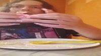 Loud chewing with mouth open then smearing shit