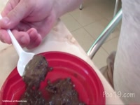 Tattooed brunette girl smearing and eating shit